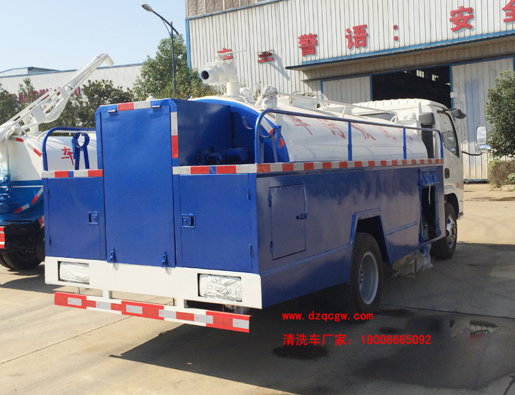 底盤說明:新款單排可前翻白色駕駛室,暖風(fēng)調(diào)節(jié),東風(fēng)5檔變速箱,朝柴95馬力,軸距3300mm,7.00-16 原廠尼龍?zhí)ィ?T前橋,3.5T后橋,氣制動(dòng)。罐體有效容積:3.67立方。P.S.該車免征已下達(dá)! 改裝部分:意大利進(jìn)口 16Mpa高壓泵或國(guó)產(chǎn)高壓柱塞泵,國(guó)產(chǎn)配套件液壓驅(qū)動(dòng)系統(tǒng),60米19mm高壓軟管,液壓驅(qū)動(dòng)卷盤,碳鋼噴頭(10個(gè)),夾心取力器,罐體形狀為圓罐,手動(dòng)操作。 P.S. 高壓清洗車可加裝灑水裝置,安裝綠化灑水炮、前沖、后灑、側(cè)噴,可進(jìn)行綠化灑水、噴霧、壓塵、高壓沖洗路面等。高壓清洗車還可加裝吸污功能,集清洗、吸污于一體。選裝普通長(zhǎng)警燈或圓形警燈,LED箭頭燈,低水位報(bào)警裝置。 1.噴水架清洗寬度2.5m-3.5m,可任意控制,當(dāng)伸縮噴桿收縮時(shí),可實(shí)現(xiàn)雙重水流強(qiáng)化清洗,適用于清洗城市道路、廣場(chǎng); 2.左、右角噴適用于清洗路緣、護(hù)欄隔離帶、人行道; 3.高壓噴槍清洗; 4.噴霧系統(tǒng),可以噴霧降塵、調(diào)節(jié)空氣濕度及噴灑空氣消毒劑; 5.低壓沖洗及灑水降溫;具獨(dú)有的前灑(水)、后沖裝置; 6.道路標(biāo)線清洗機(jī)構(gòu);適用于清洗道路標(biāo)線; 7.隔噪墻清洗機(jī)構(gòu),適用于清洗城市高架路隔噪墻;8.護(hù)欄清洗刷,適用于清洗高速公路及城市道路護(hù)欄; 9.液壓升降平臺(tái),適用于清洗及維護(hù)城市道路及公路的高空設(shè)施;10.推雪鏟,用于道路除雪。11.自吸功能、綠化澆灌及輔助消防功能。 |