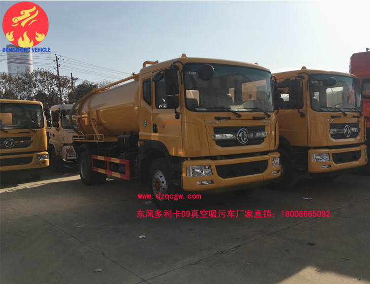 8臺東風(fēng)多利卡D9新款真空吸污車出廠,該批D9真空吸污車,采用東風(fēng)D9新款駕駛室,4500mm軸距,康明斯180馬力,罐體容積為9.8立方。配備億豐雙聯(lián)真空泵,帶油水分離器,四通閥,洗手裝置,罐體后封頭球閥控制自流口1個(gè),1個(gè)視污窗,1根7m吸糞管,舉升式罐體,罐體兩側(cè)油缸,后蓋液壓開啟,機(jī)械鎖緊,帶液位報(bào)警?蛇x裝承重報(bào)警器,進(jìn)口刮片威龍泵,雙聯(lián)泵,加裝灑水裝置。