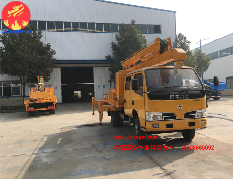 該車型采用東風(fēng)原裝雙排右駕底盤,朝柴發(fā)動機(jī),帶動力轉(zhuǎn)向。該車型的作業(yè)高度可達(dá)12米,電控操作,可伸縮前臂,1噸吊鉤。360度液壓回轉(zhuǎn)大臂,帶可伸縮調(diào)節(jié)支腿,液壓平衡閥換向閥。帶24Mpa高壓清洗裝置,24V風(fēng)速報警儀等裝置。
