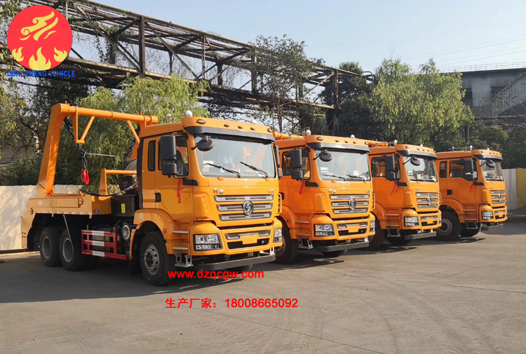 四臺國五陜汽后雙橋擺臂式垃圾車已下線,檢驗合格準予出廠,準備交付到客戶手里。