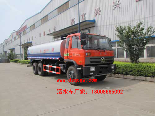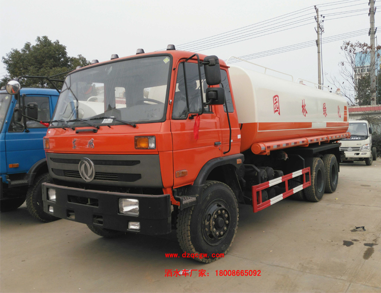 底盤說(shuō)明:東風(fēng)153型老款平頂駕駛室,玉柴220馬力或康機(jī)210國(guó)四發(fā)動(dòng)機(jī),陜齒八檔變速箱,280mm雙層車架,5T/10T前后橋,軸距4350+1300mm,10.00R20鋼比胎,帶斷氣剎,動(dòng)力轉(zhuǎn)向,排氣制動(dòng)。水罐有效容積:16立方米。 專用功能:該多功能灑水車適合于各種路面的灑水、噴霧、降溫、除塵、沖洗塵埃臟物,亦可用于園林綠化、市政環(huán)衛(wèi)、路面養(yǎng)護(hù)及應(yīng)急消防、運(yùn)輸飲用水等。專用部分由罐體、水泵、球閥、輸水管道、灑水裝置等部件組成。水泵、取力箱、球閥均為國(guó)家定型產(chǎn)品,具有性能良好,工作可靠、壓力高、流量大、油耗低等特點(diǎn)。 改裝部分:標(biāo)配前沖、后灑、側(cè)噴、工作平臺(tái)、綠化高炮、自流閥、消防接口,輸水管3米2根,8噸以上罐體帶高位花灑2個(gè),億豐泵或金龍泵,控制方式為手動(dòng)。選裝氣動(dòng)閥門控制;高位花灑,大鴨嘴,藥盤,罐體側(cè)面加裝萬(wàn)向可調(diào)節(jié)噴頭,罐體后部壓塵噴灑裝置,兩個(gè)圓警燈或長(zhǎng)警燈,LED箭頭燈,泵可選裝威龍泵或農(nóng)藥噴霧裝置。 |