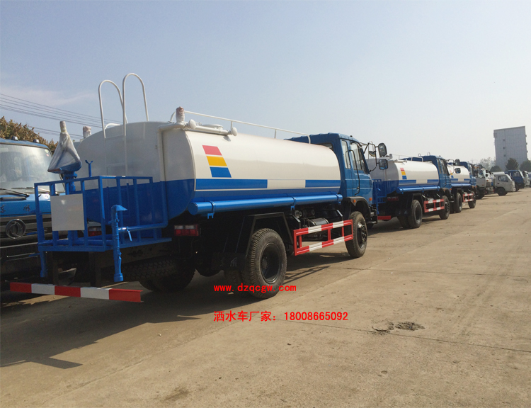 底盤說明:153豪華駕駛室,軸距4500mm或4700mm,4950mm,康機或玉柴國四發(fā)動機,大同6檔變速箱,5t前橋/10t后橋,10.00尼龍?zhí),車?50雙層。罐體有效容積:9.97立方米。帶免征。 專用功能:該多功能灑水車適合于各種路面的灑水、噴霧、降溫、除塵、沖洗塵埃臟物,亦可用于園林綠化、市政環(huán)衛(wèi)、路面養(yǎng)護及應急消防、運輸飲用水等。專用部分由罐體、水泵、球閥、輸水管道、灑水裝置等部件組成。水泵、取力箱、球閥均為國家定型產(chǎn)品,具有性能良好,工作可靠、壓力高、流量大、油耗低等特點。 改裝部分:標配前沖、后灑、側噴、工作平臺、綠化高炮、自流閥、消防接口,輸水管3米2根,8噸以上罐體帶高位花灑2個,億豐泵或金龍泵,控制方式為手動。選裝氣動閥門控制;高位花灑,大鴨嘴,藥盤,罐體側面加裝萬向可調(diào)節(jié)噴頭,罐體后部壓塵噴灑裝置,兩個圓警燈或長警燈,LED箭頭燈,泵可選裝威龍泵或農(nóng)藥噴霧裝置。 |