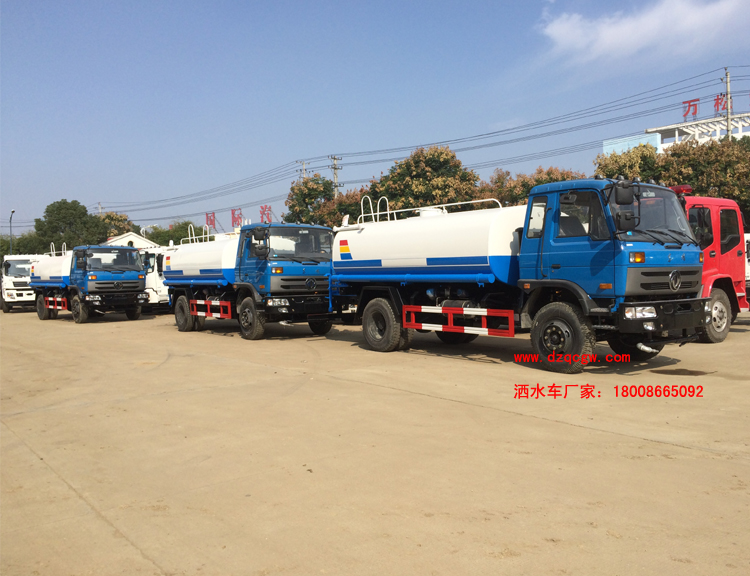 底盤說(shuō)明:東風(fēng)153單排翻轉(zhuǎn)車身,軸距3950,4500mm,朝柴或康機(jī)國(guó)四發(fā)動(dòng)機(jī),前橋3.6噸,后橋6噸,9.00-20鋼絲胎,方向助力,斷氣剎,6檔變速箱。外形長(zhǎng)8500,7500mm與軸距4500,3950mm一一對(duì)應(yīng)。罐體有效容積:11.8立方米。運(yùn)輸介質(zhì):丙酮水溶液。帶免征。 專用功能:該多功能灑水車適合于各種路面的灑水、噴霧、降溫、除塵、沖洗塵埃臟物,亦可用于園林綠化、市政環(huán)衛(wèi)、路面養(yǎng)護(hù)及應(yīng)急消防、運(yùn)輸飲用水等。專用部分由罐體、水泵、球閥、輸水管道、灑水裝置等部件組成。水泵、取力箱、球閥均為國(guó)家定型產(chǎn)品,具有性能良好,工作可靠、壓力高、流量大、油耗低等特點(diǎn)。 改裝部分:標(biāo)配前沖、后灑、側(cè)噴、工作平臺(tái)、綠化高炮、自流閥、消防接口,輸水管3米2根,8噸以上罐體帶高位花灑2個(gè),億豐泵或金龍泵,控制方式為手動(dòng)。選裝氣動(dòng)閥門控制;高位花灑,大鴨嘴,藥盤,罐體側(cè)面加裝萬(wàn)向可調(diào)節(jié)噴頭,罐體后部壓塵噴灑裝置,兩個(gè)圓警燈或長(zhǎng)警燈,LED箭頭燈,泵可選裝威龍泵或農(nóng)藥噴霧裝置。 |