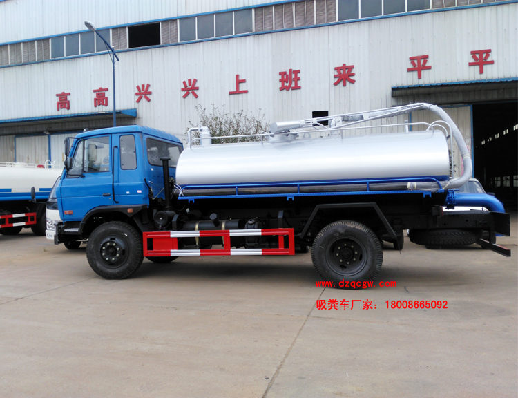 底盤說明:153豪華駕駛室,軸距3950或4200mm,玉柴或康明斯國四發(fā)動機(jī),六檔變速箱,3.6t前橋/8t后橋,9.00尼龍?zhí),車?50雙層。軸距3950mm,4200mm與整車長7450mm,7700mm一一對應(yīng)。罐體有效容積:8.13立方米。 專用部分:標(biāo)配取力器、隨州真空吸糞泵(8mm以上建議加裝雙聯(lián)真空泵)、油水分離器、四通閥、洗手裝置、罐體后封頭閘閥控制自流口1個(gè)、糞罐、帶視糞窗1個(gè)、1根6米吸糞管、普通油漆。 吸糞管: 可360度旋轉(zhuǎn),抽滿糞罐時(shí)間:≤5min,吸程:≥6m。自吸自排,壽命長,工作速度快,容量大,運(yùn)輸方便,適用于收集運(yùn)輸糞便、泥漿、原油等液體物質(zhì)。P.S.可根據(jù)客戶要求加裝灑水功能,水罐糞罐獨(dú)立分倉,即可吸糞又可灑水,一車兩用。加裝水箱或工具箱,加裝液位報(bào)警裝置。 |