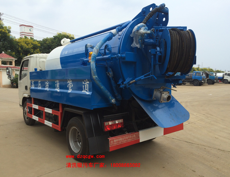 底盤說明:東風福瑞卡國五單排可翻轉駕駛室,3308mm軸距,多種可選國五發(fā)動機,5檔變速箱,前橋2噸,后橋4噸,7.00R16鋼絲胎,方向助力,ABS,空調,中控鎖,電動門窗。吸污罐體有效容積:1.9立方米,水罐罐體有效容積:1.5立方米。 清洗部分主要配備:意大利進口16Mpa高壓泵。國產配套件液壓 驅動系統(tǒng),60米19mm高壓軟管,液壓驅動卷盤,碳鋼噴頭(10個),夾心取力器,罐體形狀為圓罐,手動操作。主要用于清洗城市下水道、管道的沉積物、死角泥溝的疏通。也可用于清洗工業(yè)排液管道、壁面等,緊急時可用于救火。 吸污部分主要配備:國產多路閥、油缸;國產高質量真空泵,油水分離器,四通閥,洗手裝置。罐體后封頭球閥控制自流口1個,1個視污窗,1根7米吸糞管,普通油漆。一次性成型舉升式罐體,罐體兩則油缸,后蓋液壓開啟,機械鎖緊,帶液位報警。主要用于下水道、雨水井、檢查井、化糞池及各種溝渠內的污泥、糞便或石油化工廠污水池淤積物的抽吸、裝運和排卸。 P.S:水罐和吸污罐為兩個獨立罐體,清洗功能時用水罐,吸污功能時用吸污罐,清洗吸污兩種功能不同時使用。可加裝灑水裝置,選裝低水位報警裝置。 |
